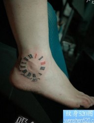 女孩子脚踝处钟表数字纹身图片