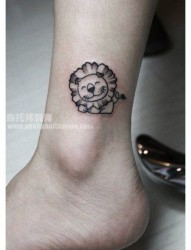女人脚踝处可爱的小狮子纹身图片