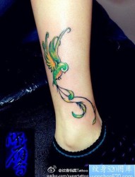 女人脚踝处小树与小燕子纹身图片