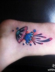 女人脚背精美的欧美彩色玫瑰花纹身图片