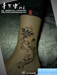 女人脚踝处唯美好看的莲花藤蔓纹身图片