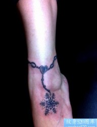 女人脚部好看流行的情侣爱心锁与钥匙纹身图片