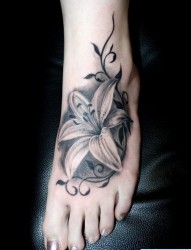 女孩子脚踝处漂亮好看的花卉纹身图片