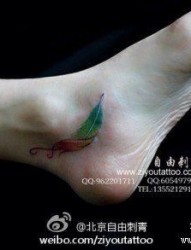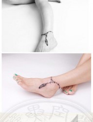 女人脚腕小巧潮流的羽毛脚链纹身图片