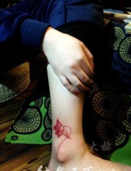 女人脚踝处小巧精美的蝴蝶结纹身图片