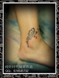 女人脚踝处精美超酷的图腾蝴蝶纹身图片