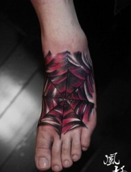 女人脚背时尚好看的玫瑰与小鸟纹身图片