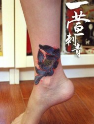 女人脚踝处潮流唯美的彩色莲花纹身图片
