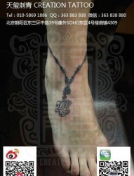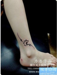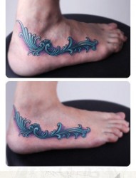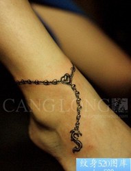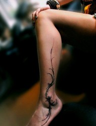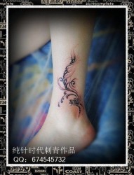 女人脚踝处精美时尚的图腾藤蔓纹身图片