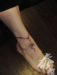 女人脚腕小巧潮流的蝴蝶结脚链纹身图片