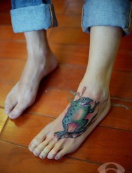 女人脚背漂亮唯美的彩色莲花纹身图片