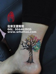 女人脚踝处漂亮小巧的彩色小树纹身图片