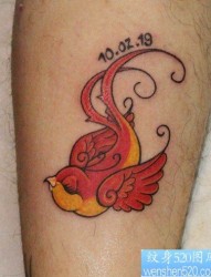 一幅腿部彩色燕子文身图片有纹身520图库推荐