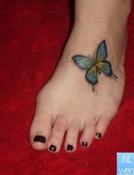 脚背彩色蝴蝶纹身图片
