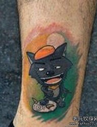 一幅彩色脚部卡通灰太狼纹身图片