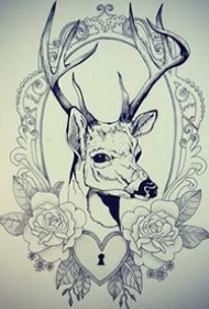 鹿纹身手稿_一套38张精美鹿纹身手稿图案欣赏