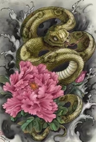 一组12张蟒蛇牡丹纹身手稿素材图案