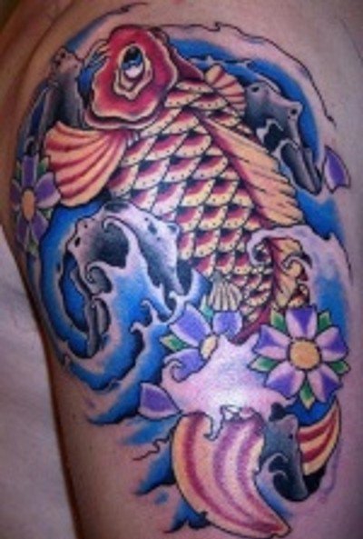 50款漂亮帅气的锦鲤纹身图案(43)