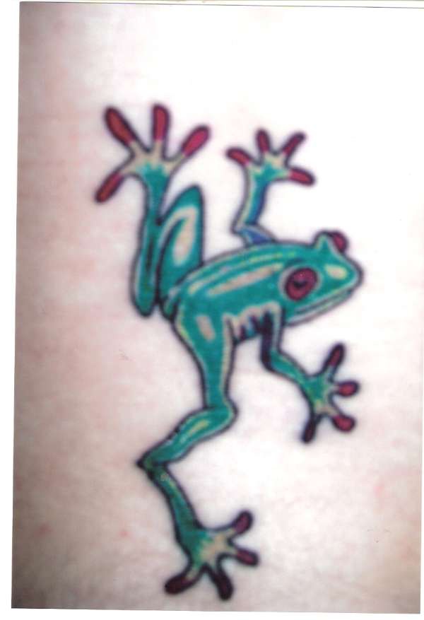 腿部彩色逼真的毒蛙纹身图案