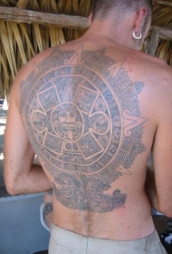背部大型阿兹特克石像纹身图案
