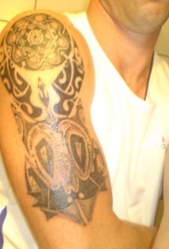 大臂黑白阿兹特克图腾纹身图案