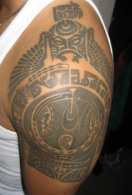 肩部阿兹特克部落萨满与鹰羽毛纹身图案