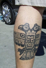 小腿阿兹特克图腾双头鹰纹身图案