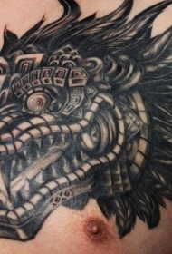 男性胸部羽毛蛇神头部阿兹特克纹身图案