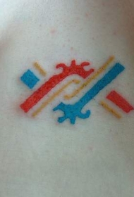 阿兹特克红色和蓝色的图腾纹身图案