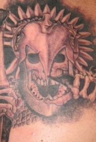 阿兹特克铁面具和邪恶的骷髅纹身图案