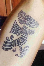 小腿黑色的阿兹特克部落风格图腾纹身图案
