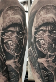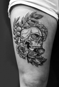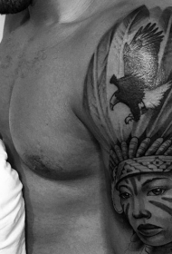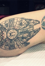 大腿惊人的黑白千年隼船与徽章纹身图案
