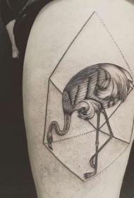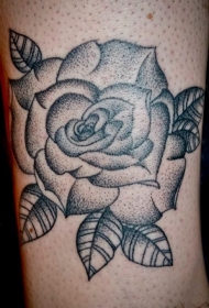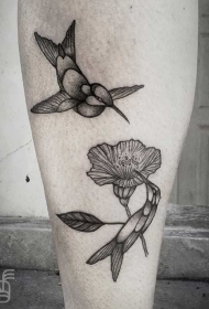 小腿黑色点刺蜂鸟和木槿花纹身图案