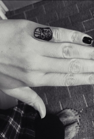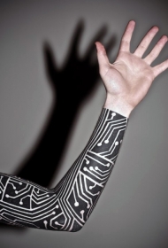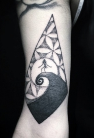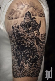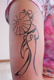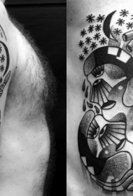 大臂黑白点刺卡通龙猫与花朵纹身图案