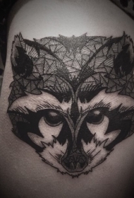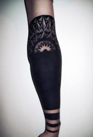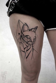 小腿印象深刻的黑色线条神秘猫纹身图案