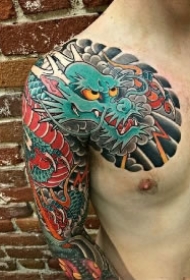 双半甲花臂纹身 9款超帅气的男性花臂双半甲纹身作品