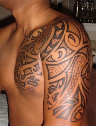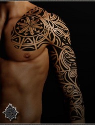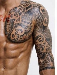 时尚阳光的欧美帅哥的图腾半甲纹身