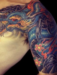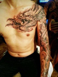 时尚的半甲纹身:霸气的龙盘踞在身上
