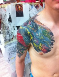 意大利纹身师 Daniele Trabucco 的半甲龙纹身