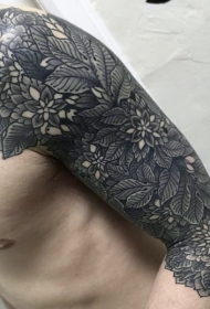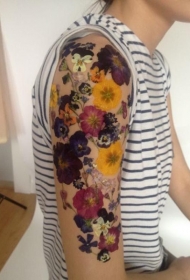 男性肩部彩色鲜艳的花朵纹身图案