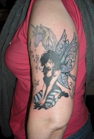 大臂时尚的精灵和独角兽纹身图案