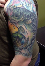 肩部令人印象深刻的彩绘独特的钩鱼纹身
