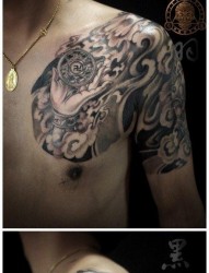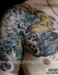 半甲纹身图片:半甲观音神兽唐狮纹身图片纹身作品