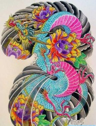 纹身520图库为你推荐一幅日式彩色半胛龙纹身手稿图片