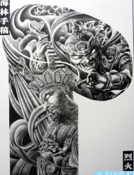 中国印之震撼超酷的半甲四大天王纹身手稿图片作品系列展示2