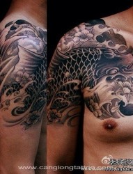 时尚很酷的一幅半甲鲤鱼纹身图片欣赏