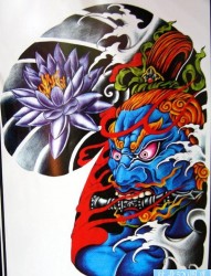 来自日本的日式经典的传统半甲唐狮子纹身手稿图片分析