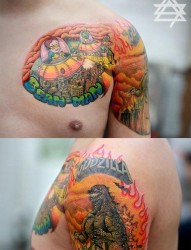 来自烈火的一幅超酷的半甲牛魔王与孙悟空纹身图片图片