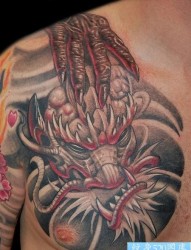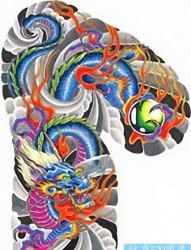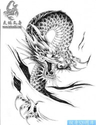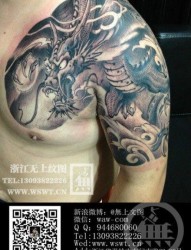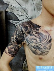 男人喜欢的经典的黑灰半甲龙纹身图片