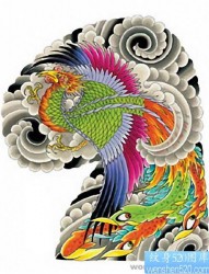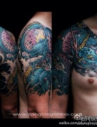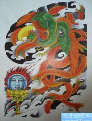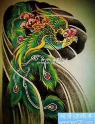 传统半甲纹身图片:半甲凤凰美女纹身图片作品